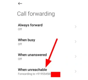 जैसे मेरा सबसे नीचे When Unreachable में Call Forwarding ऑन जिसे मैं आपको बंद करने का तरीका बताता हूँ।
