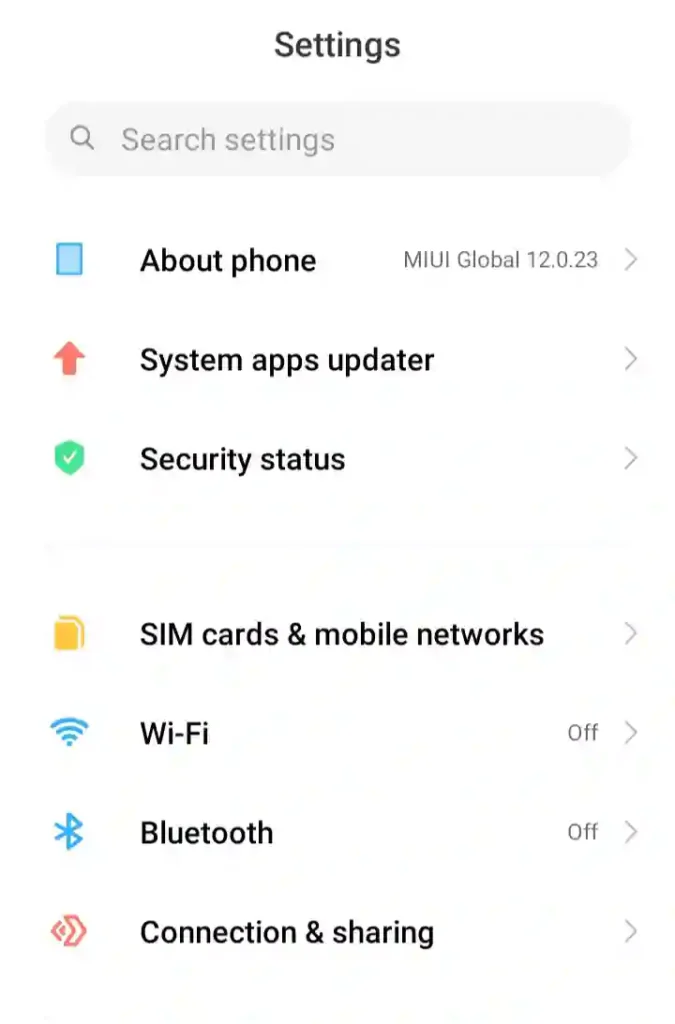 Step 1. सबसे पहले मोबाइल की सेटिंग ऑप्शन पर कि्लक करे इसके लिए आपको मोबाइल में सेटिंग ऑप्शन खोजना है जिसके लिए आप मोबाइल की स्कीन पर ऊपर से नीचे खीच कर इस सेटिंग में जा सकते है या मोबाइल में सेटिंग ऑप्शन भी खोज सकते है।
