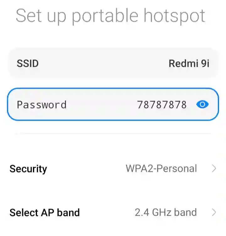 Password – यहाँ आप View पर कि्लक करके अपना पासवर्ड देख सकते है या इसे बदल भी सकते है तो इस पासवर्ड को आपको नोट कर लेना है या इसे बदल लेना है क्योकि जब मोबाइल का WiFi कनेक्ट करने की बात होगी तब इस पासवर्ड की जरूरत पड़ेगी।